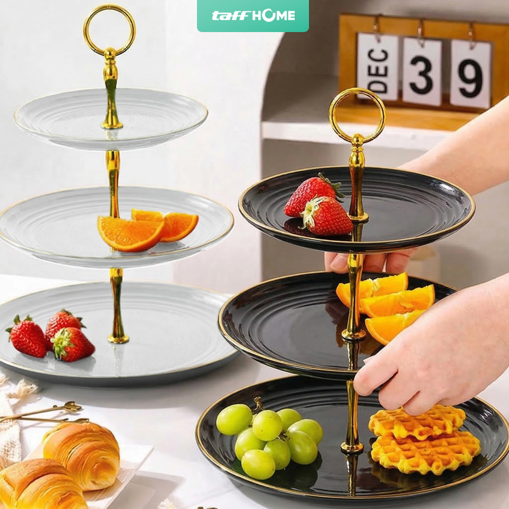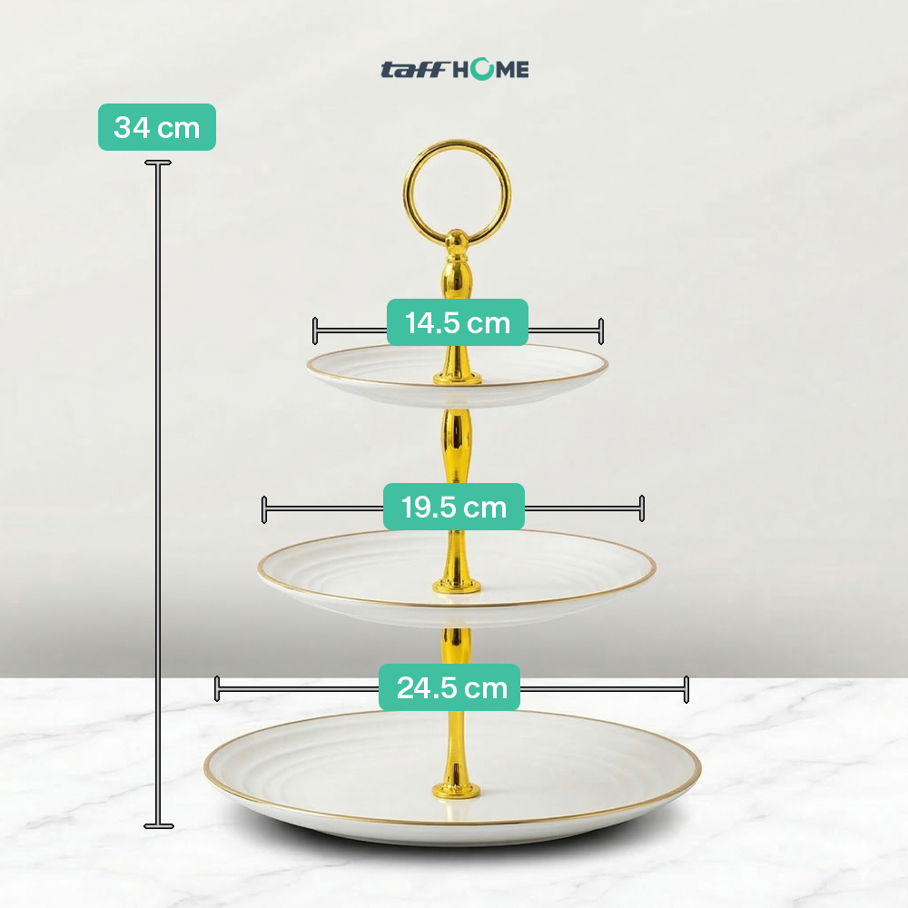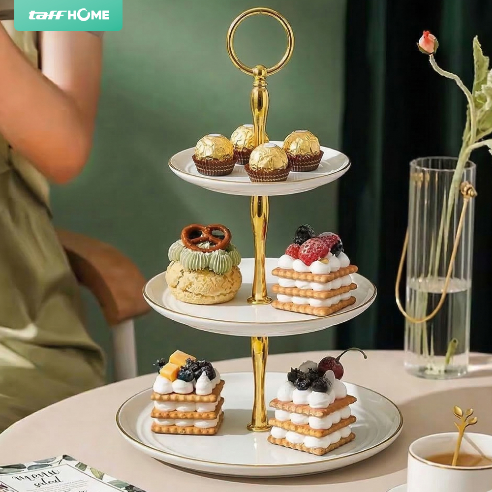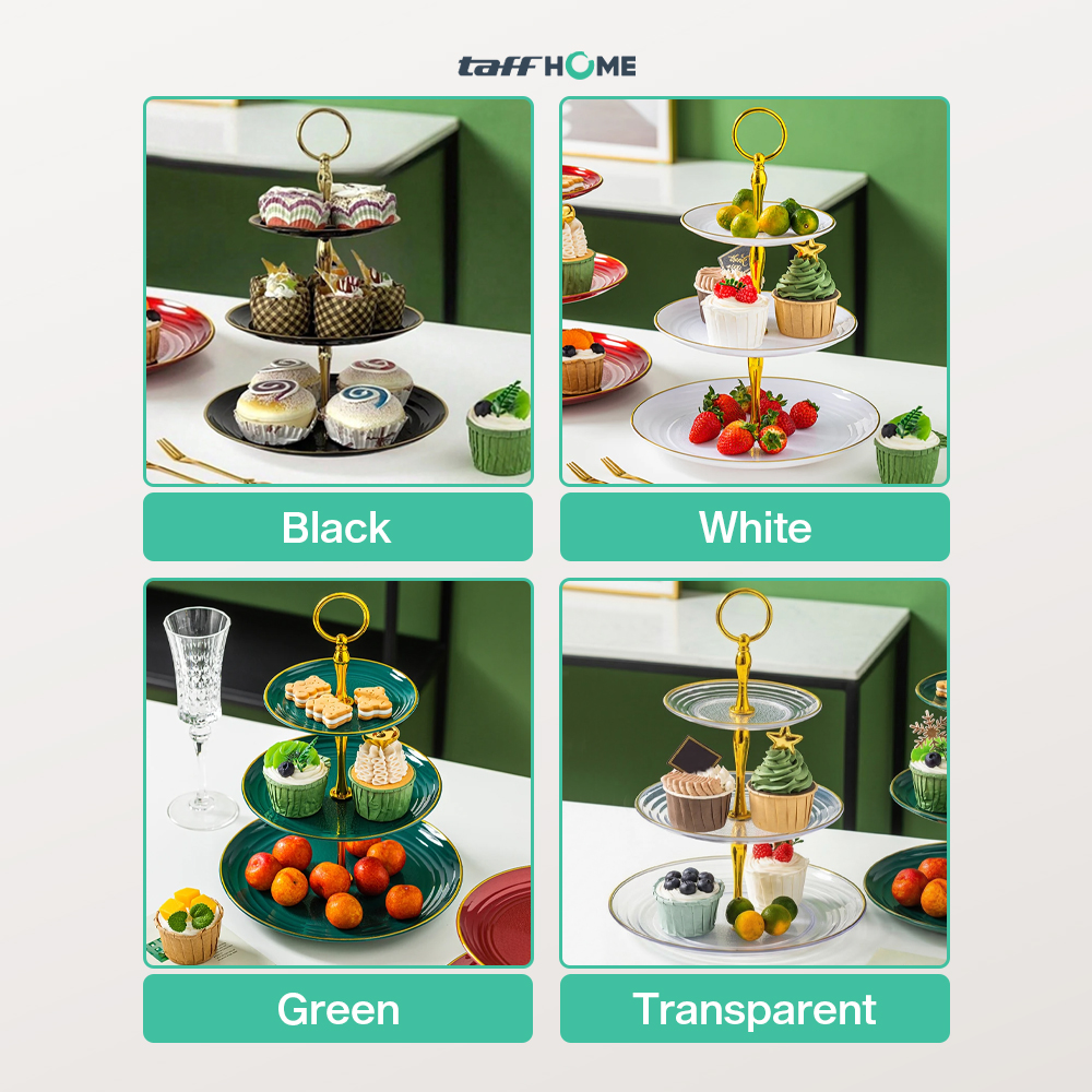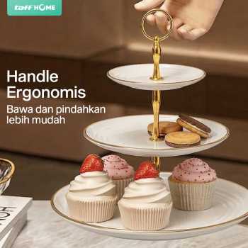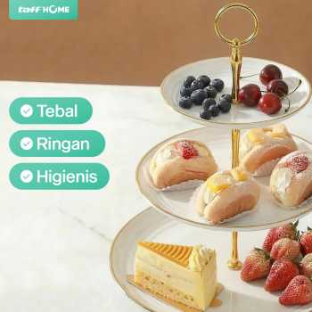 Percantik tata letak dan penyajian kue di meja makan dengan rak kue susun dari TaffHOME. Hadir dengan tiga tingkat, rak kue ini cocok untuk menyajikan kue, roti, buah, dan aneka hidangan kecil lainnya. Terbuat dari plastik PP berkualitas yang awet dan dapat digunakan jangka panjang. Desain ergonomis mudah dibongkar pasang yang sesuai untuk penggunaan sehari-hari.