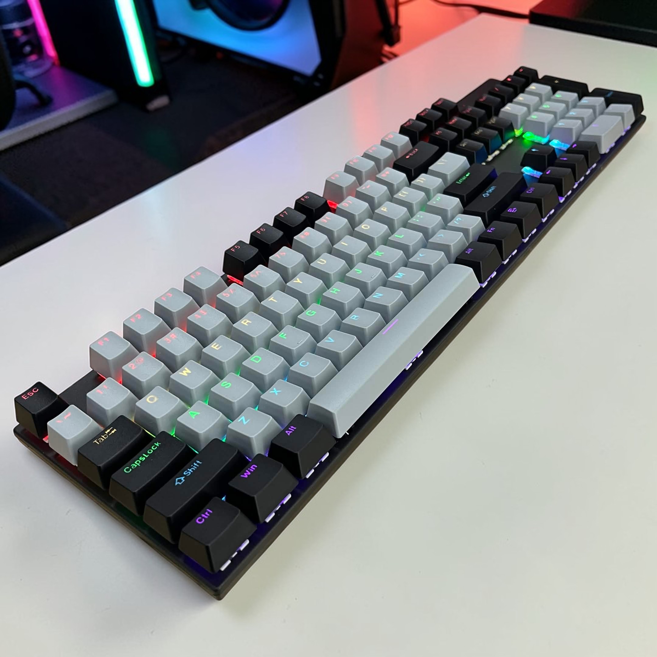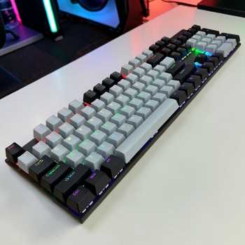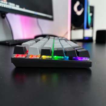 | Build Kokoh Tahan Lama Keycap dibuat dari material PBT dengan ketebalan 1.5 mm yang tidak mudah pudar yang lebih tahan panas, tidak mudah mengkilap, dan memiliki tekstur lebih solid dibanding ABS biasa. Umur tombolnya sekitar 50 juta kali tekanan dengan penurunan elastisitasnya yang kecil meskipun ditekan dalam jangka waktu yang lama. |