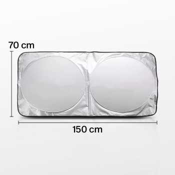 | Ukuran 150 x 70 cm Ukuran ini cocok untuk berbagai jenis mobil seperti sedan, hatchback, city car, dan SUV kecil. Disarankan mengukur kaca depan kendaraan sebelum membeli untuk memastikan kesesuaian. |