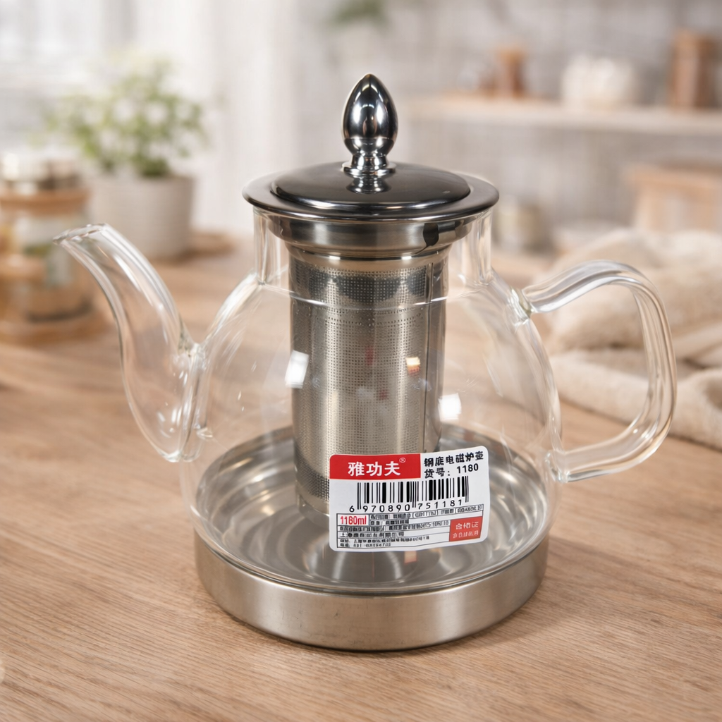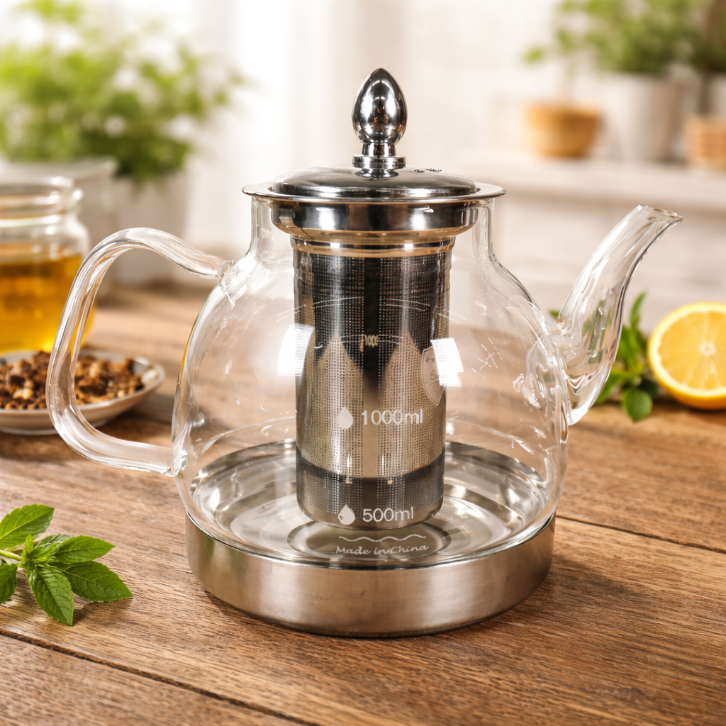 Teko ini didesain khusus untuk membuat Chinese tea. Teko ini memiliki penyaring pada bagian atas di mana Anda dapat meletakkan berbagai macam jenis teh kering pada bagian penyaring ini, kemudian Anda tinggal menuang air panas pada penyaring tersebut untuk menghasilkan teh yang sedap. Terdapat alas berbahan stainless steel yang menyatu pada bodi kaca teko dan tidak bisa dilepas.