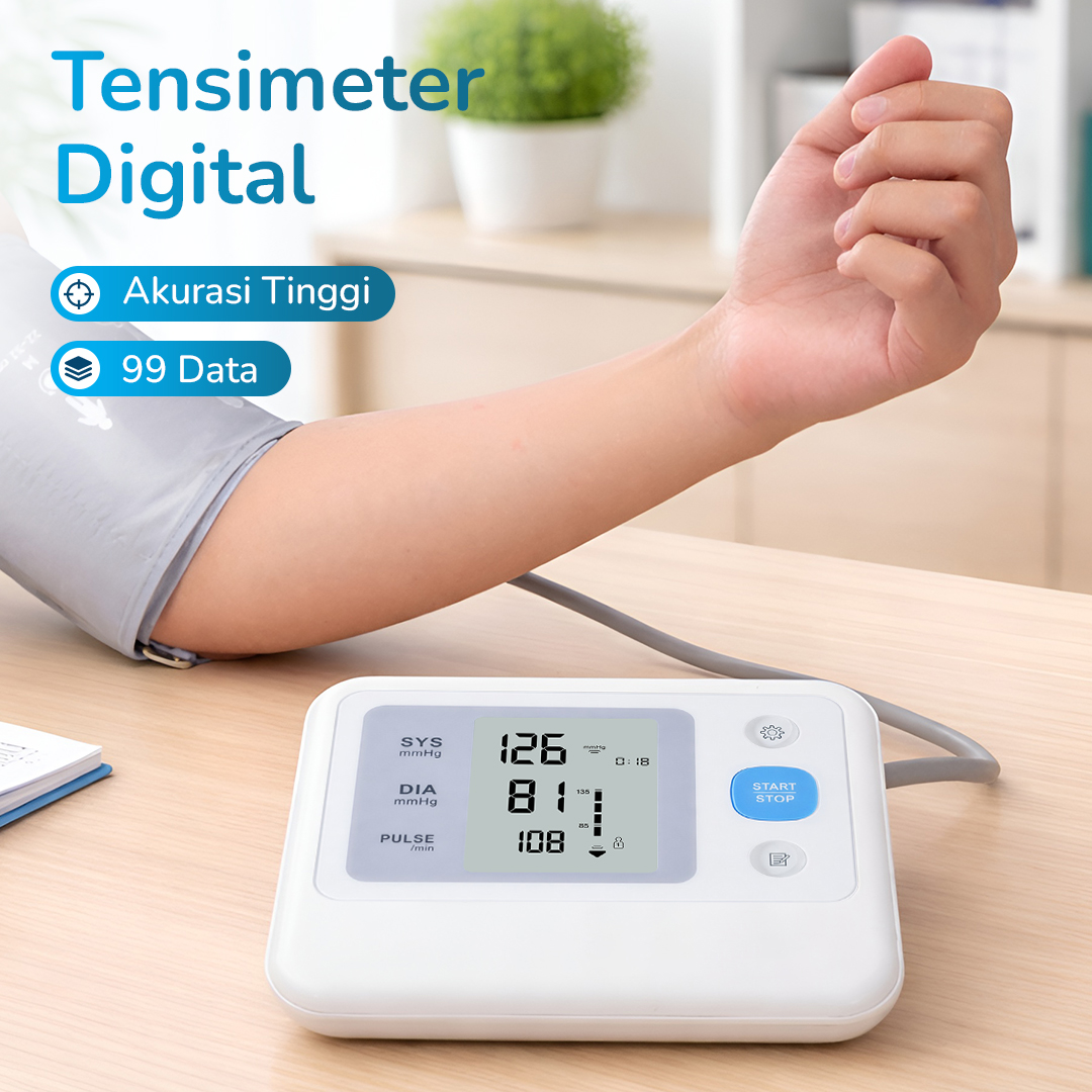 Jaga kesehatan dengan rutin memeriksa tekanan darah secara mandiri dengan tensimeter digital dari YONER. Menggunakan chip pengukuran digital, alat ini dapat mengukur tekanan darah hanya dalam hitungan detik dengan tingkat akurasi tinggi. Memantau kondisi kesehatan semakin praktis karena tensimeter digital dapat menyimpan hingga 99 data pengukuran dari 2 kun berbeda.