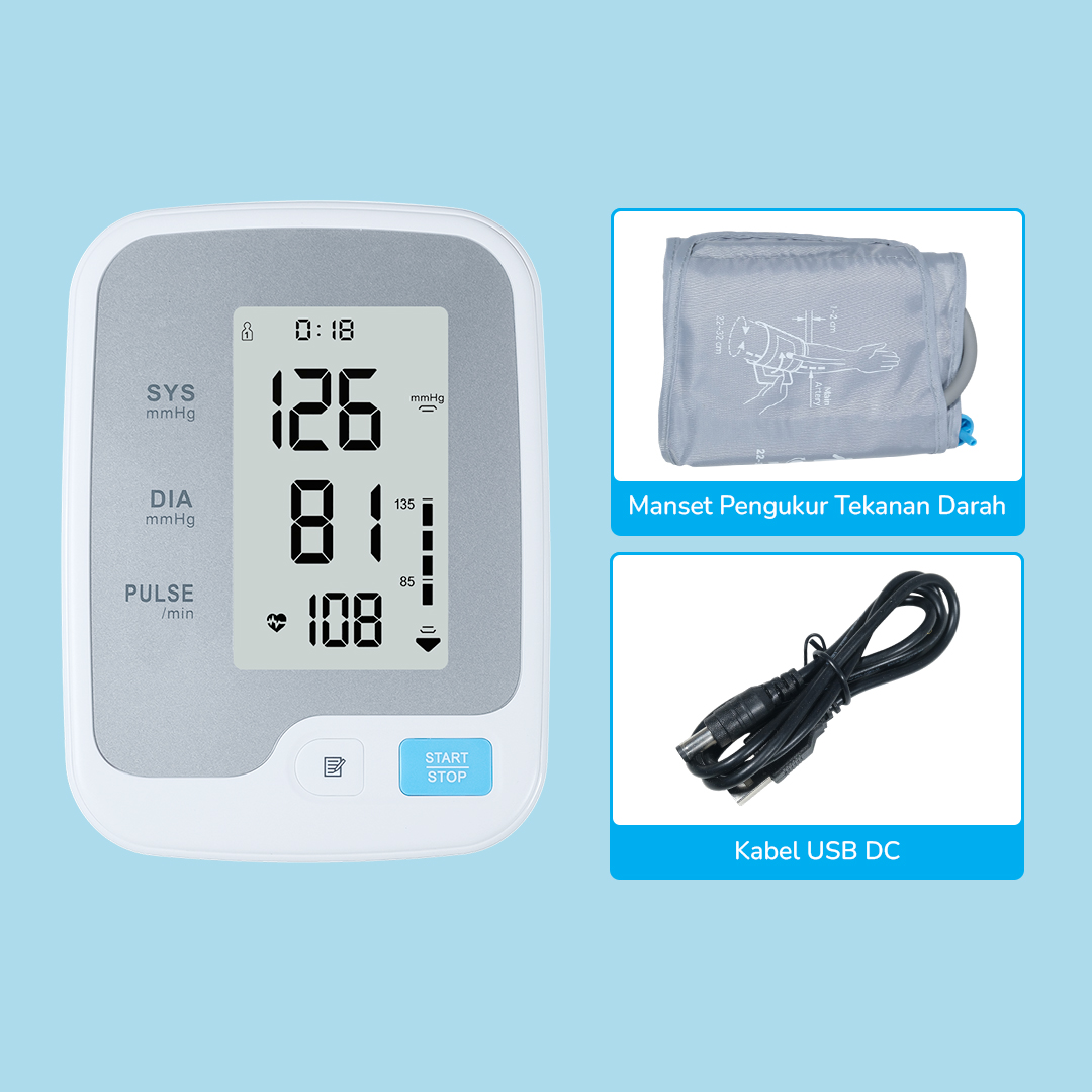 Jaga kesehatan dengan rutin memeriksa tekanan darah secara mandiri dengan tensimeter digital dari YONER. Menggunakan chip pengukuran digital, alat ini dapat mengukur tekanan darah hanya dalam hitungan detik dengan tingkat akurasi tinggi. Memantau kondisi kesehatan semakin praktis karena tensimeter digital dapat menyimpan hingga 99 data pengukuran dari 2 akun berbeda.