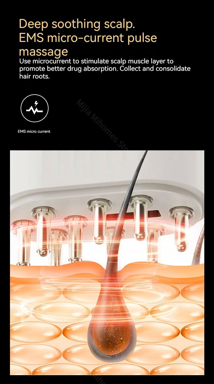 | Bergetar 10000 Kali per Menit Semua jarum pada scalp serum applicator ini berfungsi sebagai alat pijat dengan getaran hingga 10 ribu kali per menitnya. Mampu memberikan relaksasi yang lebih pada kulit kepala Anda sembari menyalurkan obat serum. Tidak hanya relaksasi, getaran dari jarum juga dilengkapi EMS Micro-current Pulse yang mampu merangsang otot pada kulit kepala Anda agar dapat menyerap serum dengan lebih maksimal. |