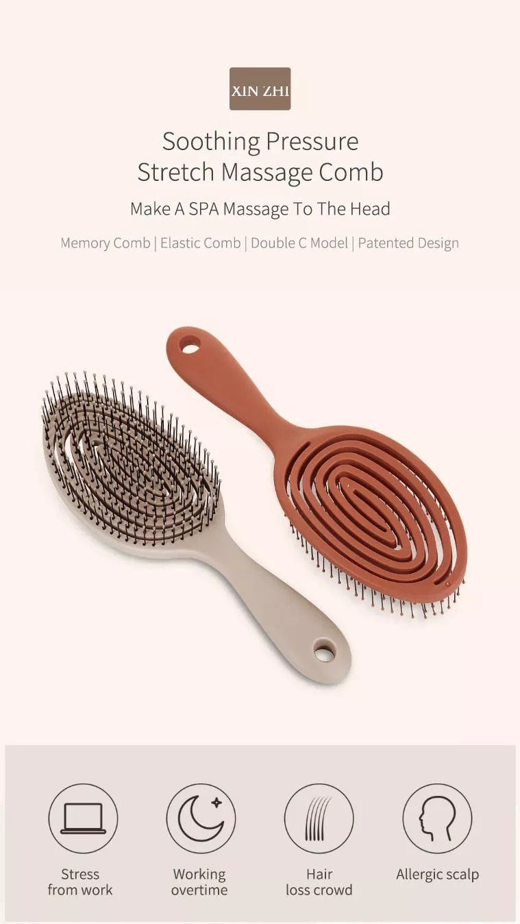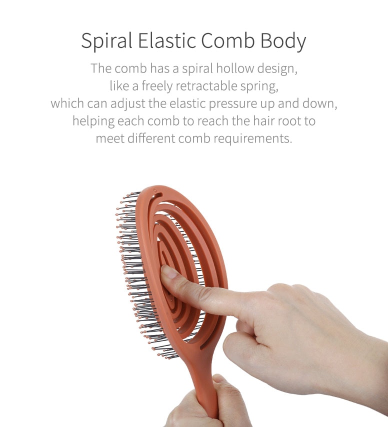 | Badan Sisir Elastis Sisir Xiaomi Youpin Xinzhi ini memiliki desain unik yaitu spiral hollow desain yang sangat elastis layaknya sebuah per. hal ini memungkinkan Anda untuk meningkatkan atau mengurangi tekanan saat Anda menyisir tapi tidak akan melukai kulit kepala Anda.