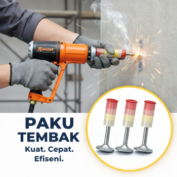 Paku tembak ini ideal digunakan untuk memasang angle iron (besi sudut), sambungan pintu dan jendela, braket penyangga, perlengkapan kebakaran, serta kayu pada permukaan beton atau baja. Artinya, alat ini bukan sekedar untuk beton saja, tetapi juga sangat berguna untuk pekerjaan instalasi yang membutuhkan pengikat kuat antara material berat dan struktur dasar.