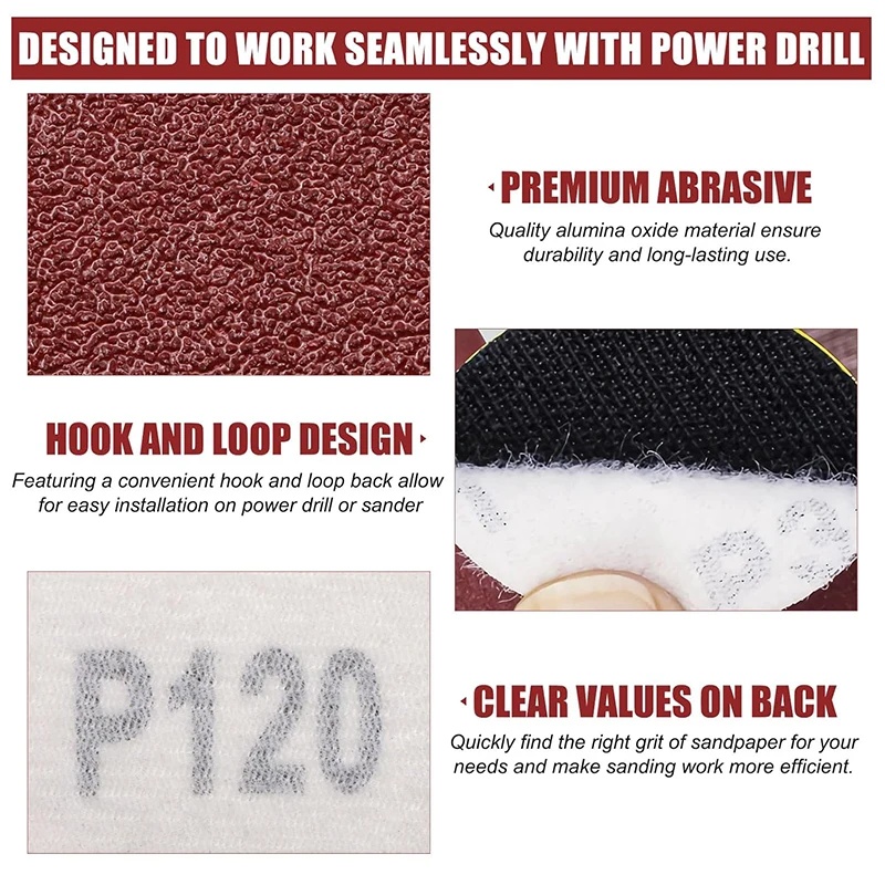 | Ukuran Pas untuk Orbital Sander Ukuran standar 2 inch (5 cm) memastikan amplas ini kompatibel dengan orbital sander, random orbital sander, maupun drill polisher adapter yang mudah ditemukan di pasaran. |