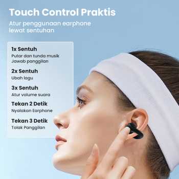 | Touch Control Praktis Tak perlu repot mengambil smartphone, cukup sentuh earphone untuk melakukan berbagai aktivitas. Fitur touch control responsif masukkan berbagai perintah hanya dalam 1x sentuh. |