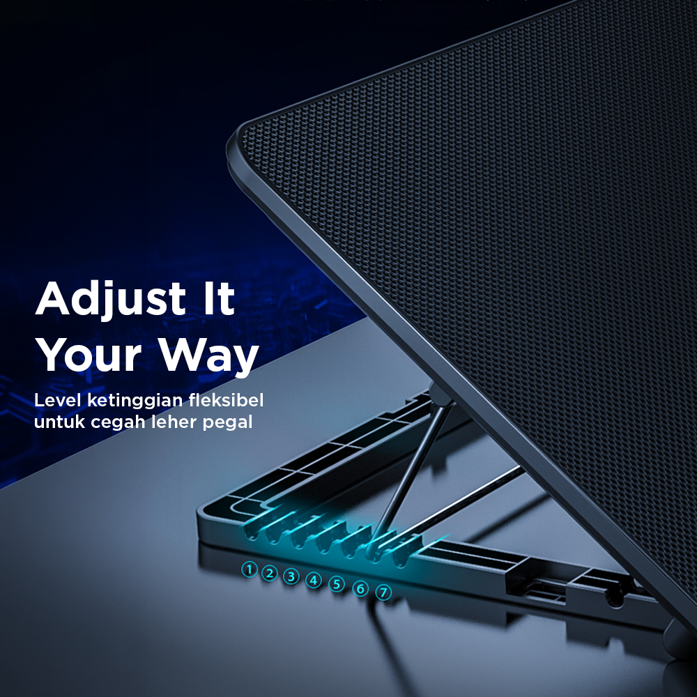 Performa laptop menurun karena overheat? Cooling pad laptop dari ZJMZYM hadir dengan 8 kipas berkecepatan tinggi dan senyap jaga suhu laptop tetap stabil bahkan dengan beban kerja berat. 7 Level ketinggian dapat diatur sesuai kebutuhan agar nyaman digunakan. Lengkap dengan lampu LED yang membuat set up gaming makin keren. Kini Anda bisa memainkan berbagai game dengan tenang tanpa khawatir rusak karena overheat.