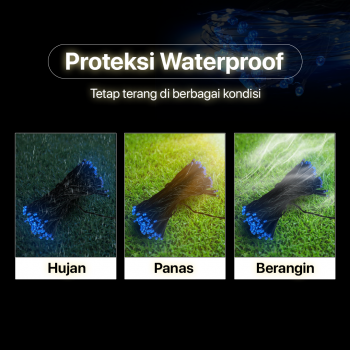 | Proteksi Waterproof Proteksi waterproof yang digunakan membuat lampu hias tahan air dan debu. Gunakan untuk menerangi rumah di berbagai cuaca, mulai dari hujan hingga panas tanpa masalah. |