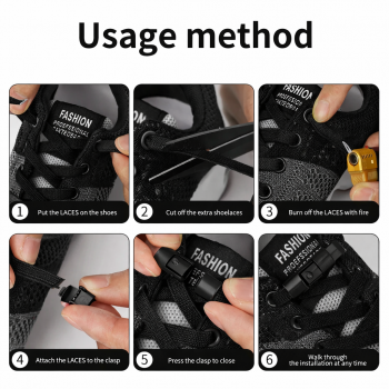 | Pemasangan Mudah Anda dapat mengganti tali sepatu lama dengan lazy no tie ini dengan mudah! Pertama-tama masukkan tali lazy no tie seperti tali sepatu biasa ke sepatu, lalu kencangkan sesuai ukuran kaki Anda. Selanjutnya, potong sisa tali yang kepanjangan agar tali tidak mengganggu gerakan Anda saat berjalan. |