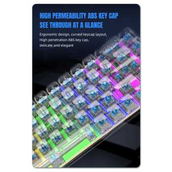 | Dilengkapi Full Lampu RGB Tampilan keyboard dibuat lebih berwarna lewat dukungan lampu RGB dengan total 16,8 juta warna. Beragam warna dapat dikustomisasi untuk menghadirkan preset efek cahaya menarik agar tampilan meja kerja lebih ciamik. Semakin indah dengan desain transparan yang membuat efek RGB tampak lebih menyala. |