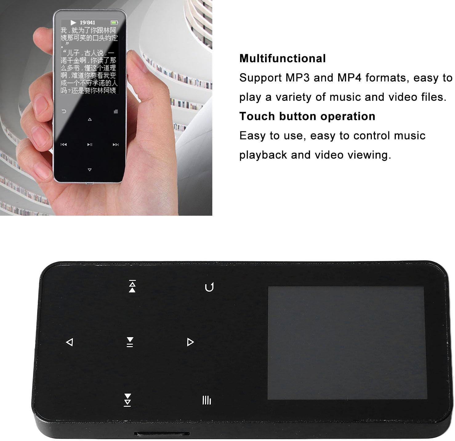 Jika musik adalah bagian dari kehidupan Anda, gunakan MP3 digital audio player dari ZYZY karena dapat memutar musik dengan kualitas tinggi serta dapat menampilkan video dalam format MP4. Didukung dengan layar berwarna dengan ukuran 1.8 Inch. Dilengkapi bluetooth 4.2 dan baterai bawaan dengan kapasitas 500 mAh. Anda bisa menikmati musik, menonton video, hingga membaca ebook di mana pun karena bentuknya kecil dan ringan untuk dibawa.
