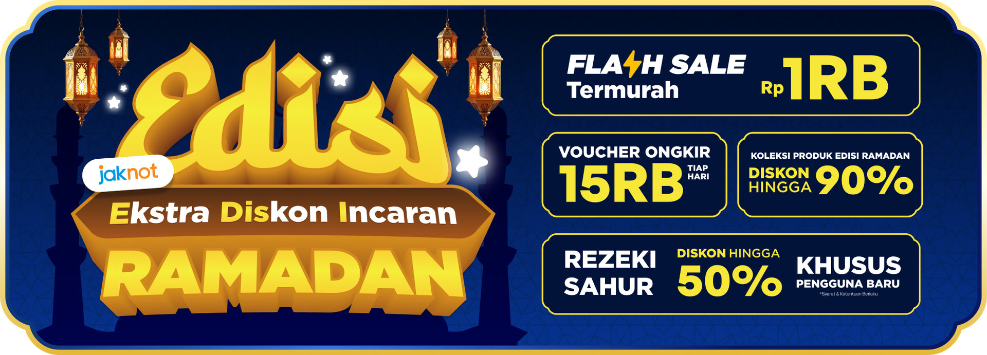 Selama periode promo Ramadan, Jaknot menghadirkan Flash Sale Setiap Hari dengan harga spesial mulai dari 1RB-an. Beragam produk favorit bisa kamu dapatkan dengan harga super terjangkau, mulai dari kebutuhan rumah, elektronik praktis, hingga perlengkapan penunjang aktivitas Ramadan.