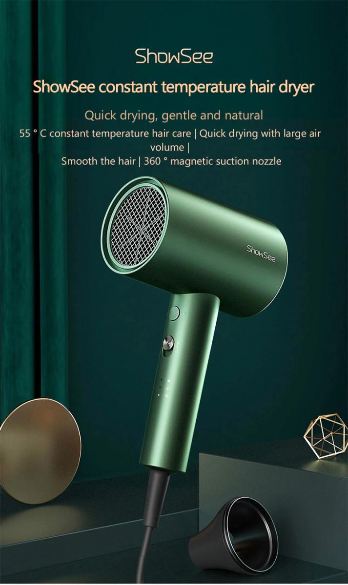 Suntuk dengan rambut basah yang sulit diatur? Inilah saatnya untuk menggunakan hair dryer A5 dari ShowSee. Mengeringkan dan menata rambut jadi makin mudah berkat 6 bilah kipasnya yang mampu menghasilkan volume angin besar dan minim suara. Udara panas atau dingin yang dihasilkan juga konstan. Mengadopsi teknologi ion negatif, hair dryer ini siap menjaga kesehatan rambut, serta membuatnya berkilau dan halus.
