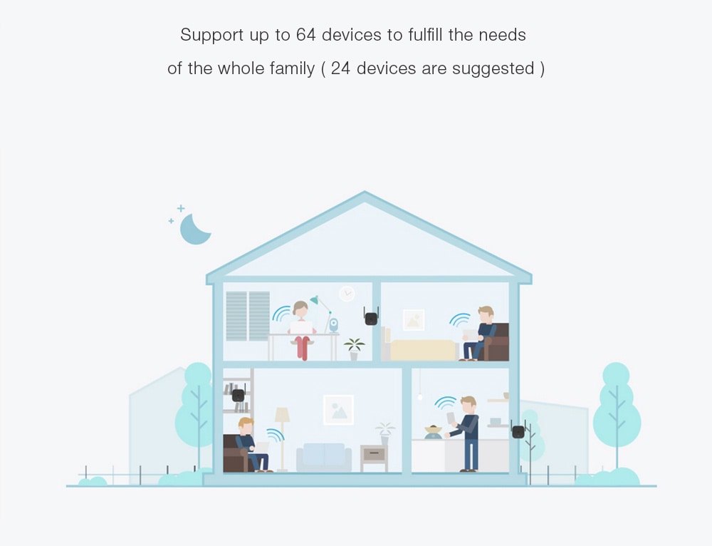 | Mendukung Hingga 64 Pengguna Saat menyelenggarakan acara di rumah seperti arisan, WiFi tidak dapat mencakup banyak pengguna karena terbatas. Namun, setelah memasang alat ini Anda dapat menampung hingga 64 pengguna! Tapi sangat disarankan untuk terhubung dengan 24 pengguna untuk koneksi yang lebih baik.