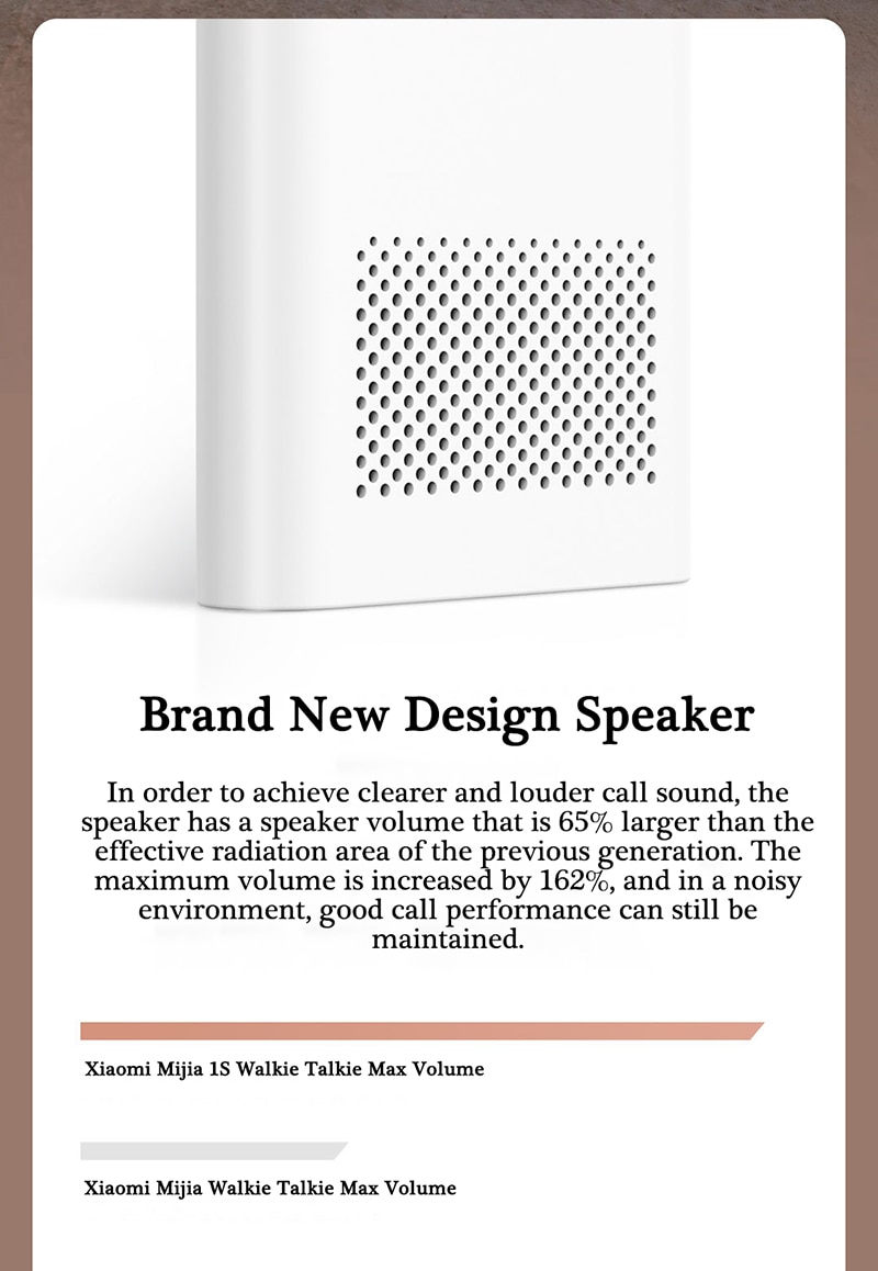 | Peningkatan Output Suara hingga 162% Lebih Baik Dengan teknologi audio yang diperbarui, Xiaomi Mijia 1S menawarkan output suara yang lebih kuat dan jernih. Output suara ini meningkat hingga 162% lebih baik dibandingkan generasi sebelumnya, memastikan Anda dapat mendengar komunikasi dengan jelas, bahkan di lingkungan dengan gangguan suara. Suara yang lebih keras dan tajam membantu menjaga komunikasi tetap lancar tanpa hambatan.